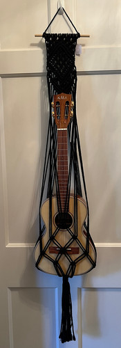 Checkout the new Macramé Ukulele Holders being offered at The Uke House! Each hanger is handcrafted by artist Lori Mitchell, a ukulele player from Akron, Ohio. We are currently offering 3 sizes of Macramé ukulele holders: small-$10, medium-$20 and large-$30 and in a variety of colors. Stop in at The Uke House to see the variety of styles and colors. She also does special commissions, so please let us know your specific needs.
